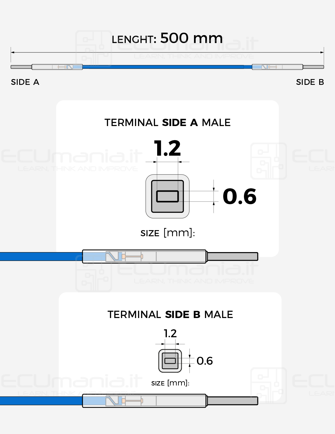 • Terminal B: male MCON 1.2 × 0.6 mm