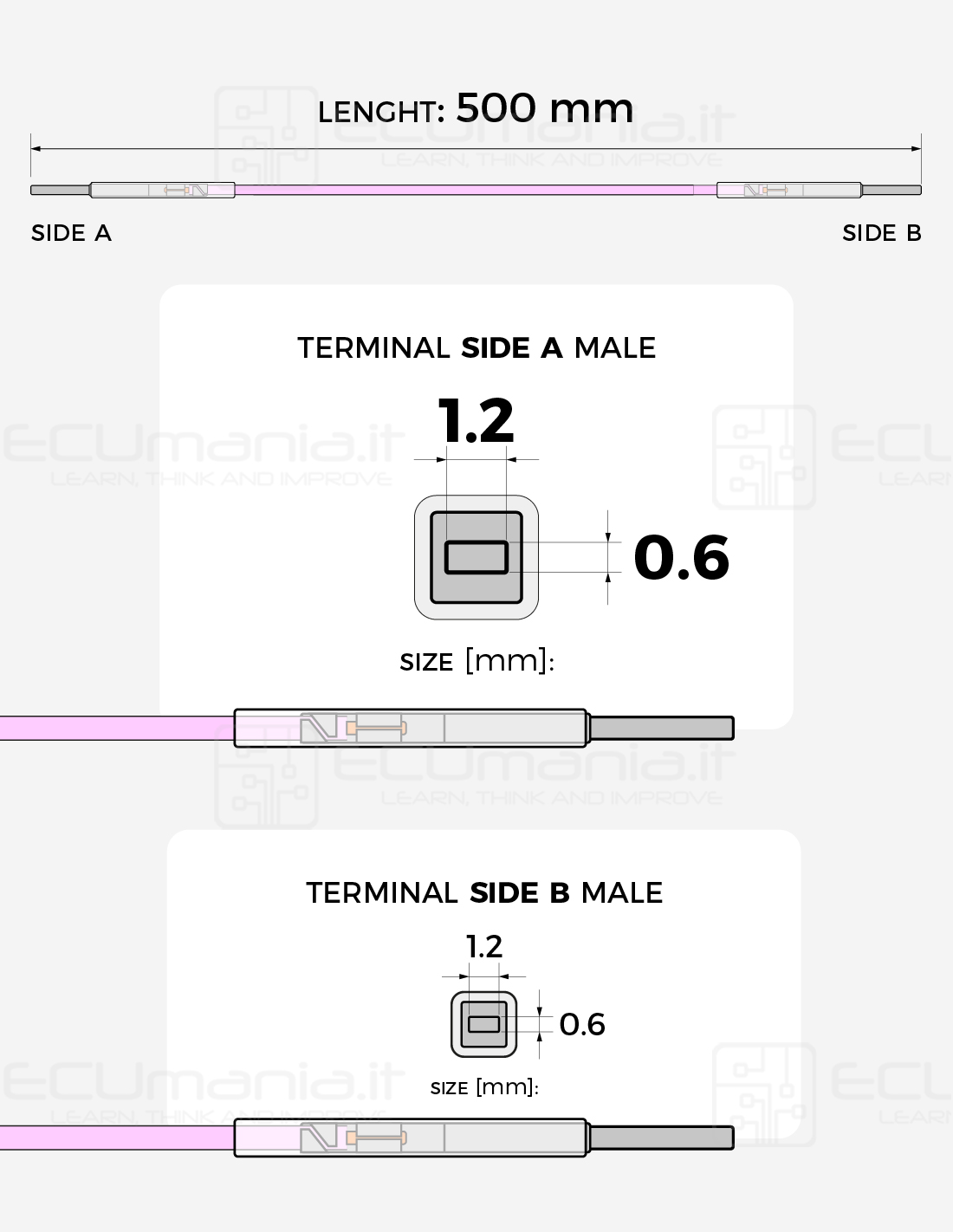 • Terminal B: male MCON 1.2 × 0.6 mm