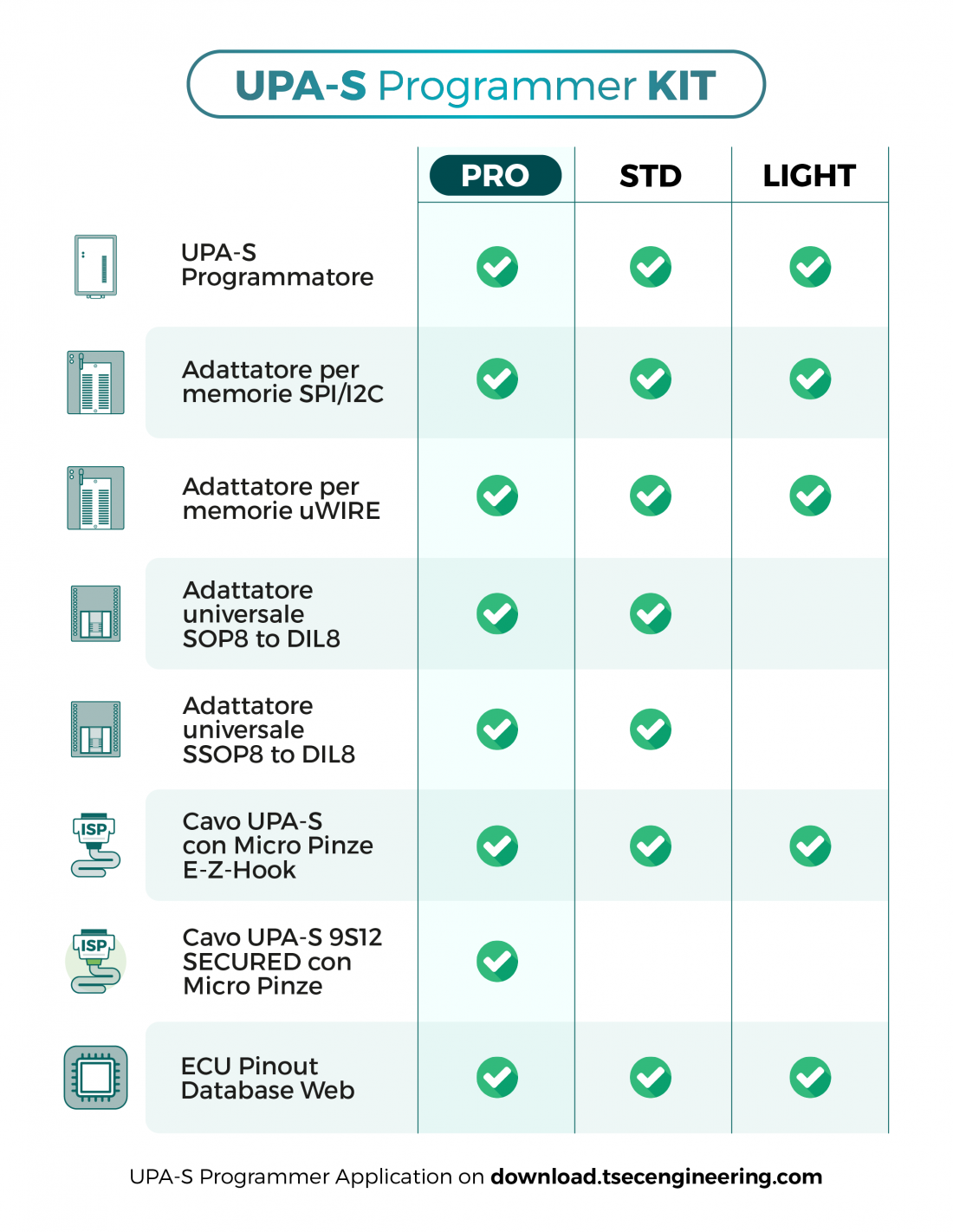 The UPA-S Professional Kit is a complete starter solution designed for workshops that want to operate immediately on automotive ECUs, EEPROM and secured microcontrollers.