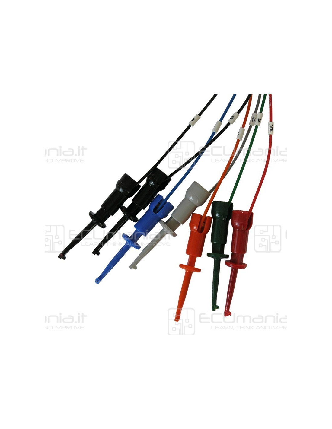 The micro clips allow direct connection to small pads and test points on the PCB, eliminating the need for soldering and simplifying bench operations.
