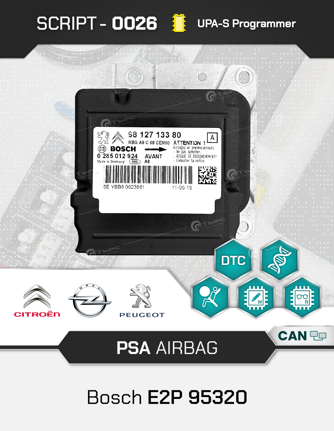 Lo script dedicato al reset delle centraline Airbag Stellantis / FCA Mopar Continental MCU TriCore TC233LP-32F consente di risolvere rapidamente e in totale sicurezza i problemi legati ai dati urto. Con una procedura completamente automatizzata e un manuale dettagliato, puoi ripristinare la centralina Airbag con un solo click.